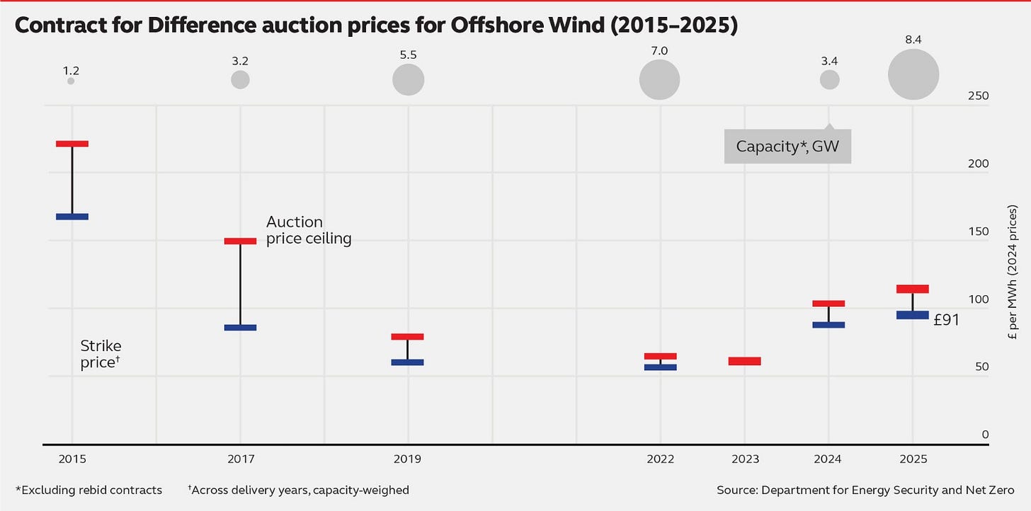 Britain just bought 8.4GW of new wind capacity. They will now go ahead backed by 20-years contracts guaranteeing them a fixed-price of £91.20 per MWh (in 2024 prices).