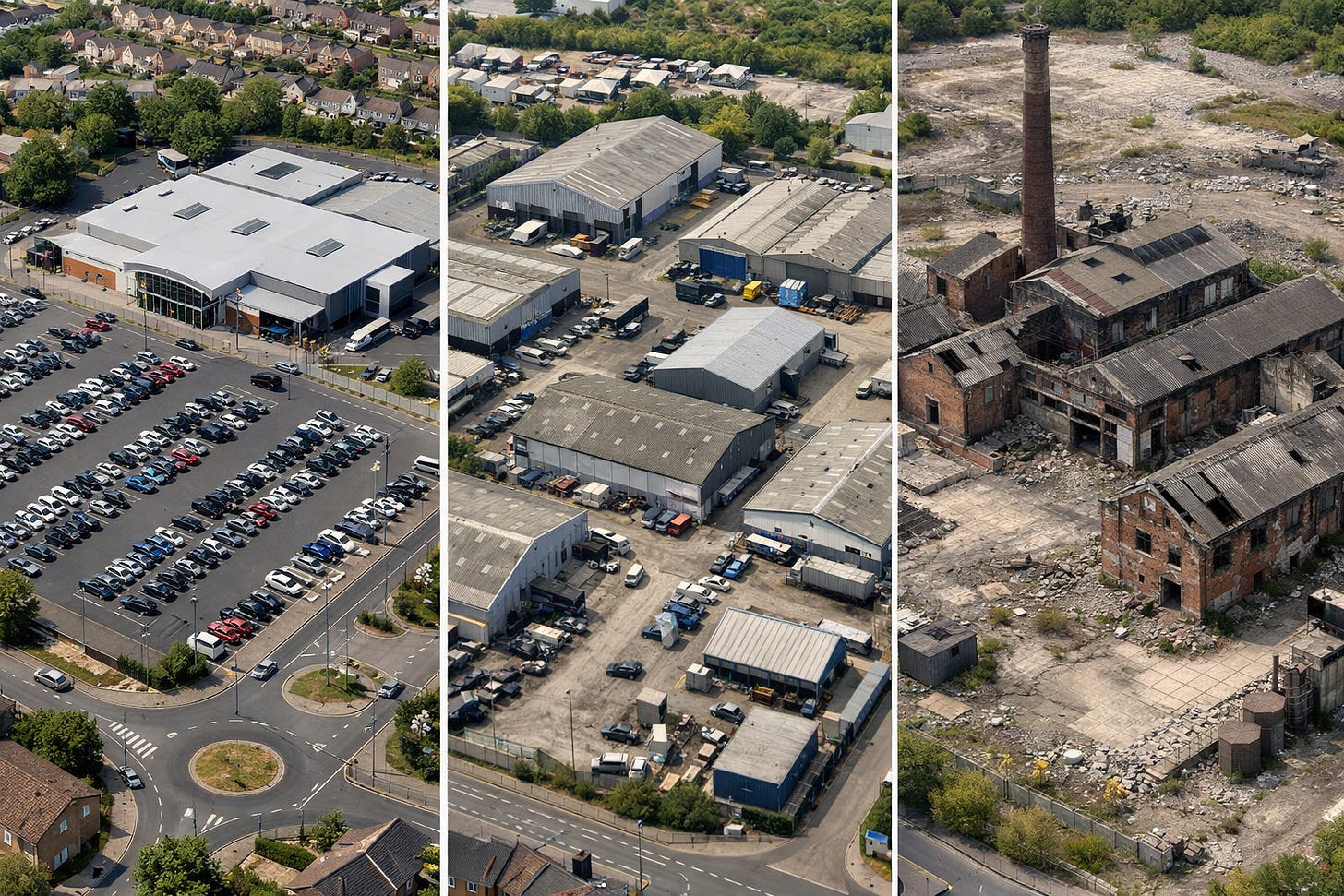 Under the National Planning Policy Framework, brownfield land includes land with a permanent structure and its curtilage, including fixed surface infrastructure such as large areas of hardstanding. This is intuitive. The following sites pictured below would all count as ‘brownfield’ under any common-sense definition.