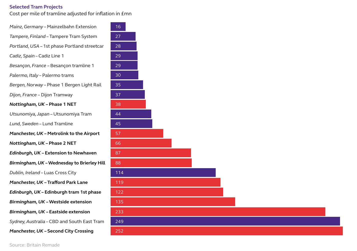 And then there’s Trams. One of the New Towns suggested by the Taskforce was Milton Keynes. This might sound strange given Milton Keynes itself is (or was?) a New Town. Yet the Taskforce’s suggestion is Milton Keynes could be dramatically densified unlocking a town’s worth of homes. One way to expand the population of MK without clogging up its famous roundabouts is to build a tram, but at current costs that won’t be easy.